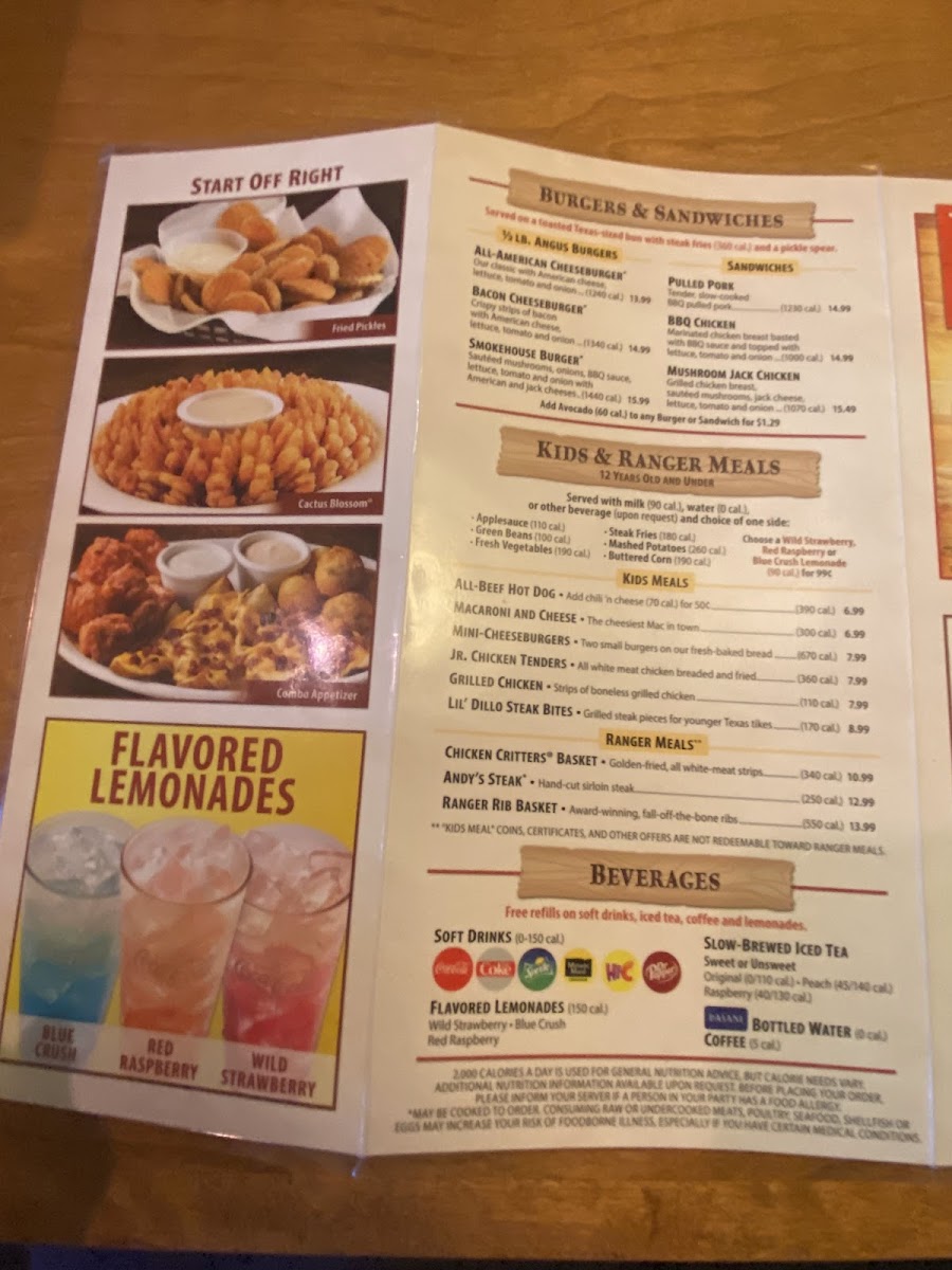 Beverages range from refreshing iced teas and lemonades to classic fountain drinks, all suited to complement the rich, satisfying flavors of the main dishes. The menu’s simplicity invites guests to relax and enjoy a hearty meal, whether it’s a family birthday celebration or a casual night out with friends.